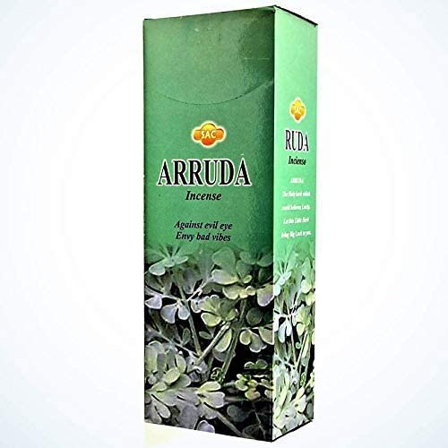 Incienso indio natural con arruda y protegete de las maldiciones como el mal de ojo o la envidia. 6 cajas de incienso en varillas 20 varillas x caja. Fragancia de Ruda Fabricado en India